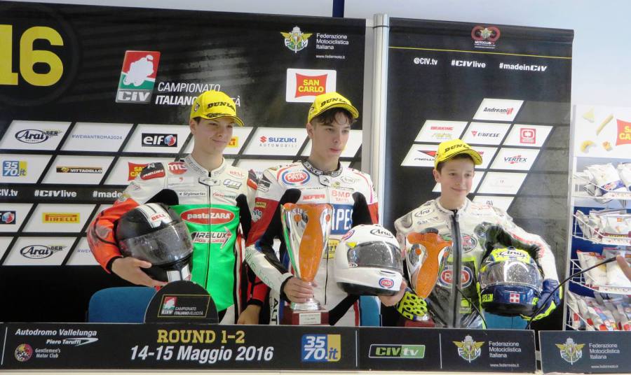 CIV: il genovese Riccardo Rossi vince in PreMoto3 con RMU, a podio anche