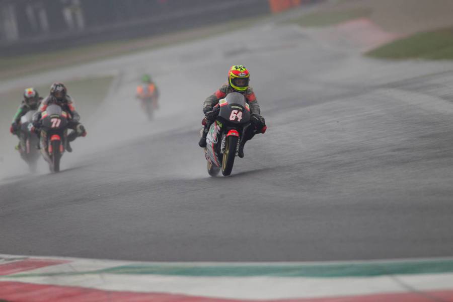 In PreMoto 3 250cc, gara ritardata di un’ora per la pioggia e ridotta a 10