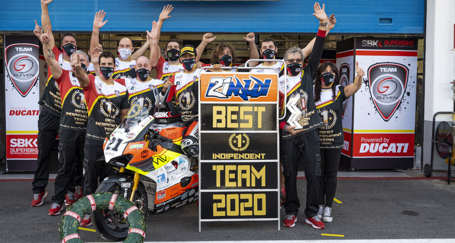 L’anno 2020 chi lo dimenticherà…nessuno…un po' per il covid, il lockdown, l’ansia di non sapere cosi ci aspettava…il dispiacere nel vedere il reparto ospedaliero messo in ginocchio…ecc. anche io non lo dimenticherò, perché i test invernali e la prima gara australiana furono svolti come ci aspettavamo ma al rientro dall’Australia giunti a Doha non sapevamo neanche se saremmo rientrati a casa. Da quel giorno tutto è cambiato, se non tutto, tanto. Passata la bufera e ripreso il lavoro in pista cominciammo con i test sbk di Misano a giugno. Due giorni di lavoro, dove cominciavamo a pensare che avevamo qualcosa di grande da poterci giocare….in quei due giorni, tutti gli ingressi in pista miglioravamo i nostri tempi e il feeling moto-pilota. Quel tempo di 1,33,5 fatto con gomma da gara ci lasciò stupiti. Micheal Rinaldi e la nostra Ducati erano un tutt’uno. E quel video del giro di Misano aveva dell’incredibile. Sembrava di vedere la moto di un video gioco. Anche la stampa commentò quasi incredula e noi avevamo quella smania di tornare in pista perché sapevamo davvero di potere fare ciò. Il calendario storpiato e ridotto ad 8 gare totali compresa l’Australia non ci piaceva. Cominciammo a fine luglio con Jerez, Portimao, la doppia di Aragon, Barcellona, Magny cours, e l’Estoril. A Jerez in gara 2 ci trovammo subito sotto il podio con un quarto posto e primi degli indipendenti dopo che in gara uno avevamo fatto sesti e in spr undicesimi. Da questo quarto posto è stato sempre un crescendo. A Portimao nelle gare lunghe un quinto posto e un sesto posto, entrambi primi indipendenti ci stavano quasi stretti ma eravamo costantemente a lottare con quelli che contano in tutti i turni. Ancora eravamo un pelo in difficolta nella gara corta perché non eravamo velocissimi subito, ma nella gara lunga dopo metà gara cominciavamo ad essere quasi imbattibili. Cominciavamo a scoprire vari segreti del v4 e ad avere conferme su cose scoperte nell’anno precedente insieme a Laverty. Questo ci faceva fare la differenza durante i fine settimana di gara. Il feeling migliorava di giro in giro e anche noi nel box stavamo bene e ci divertivamo. Sapevamo cosa stavamo facendo, non ci veniva a caso o per caso.
